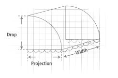 The angle of an awning is one of the most important considerations when making a choice – and often overlooked. The drop of an awning should be considered depending on the orientation of the site to the sun. Be sure to observe how the sun strikes that particular area and bear in mind the different angles between summer and winter. Ideal Awnings can tailor make the drop of the awning as well as design it with appropriate angles for the best results.